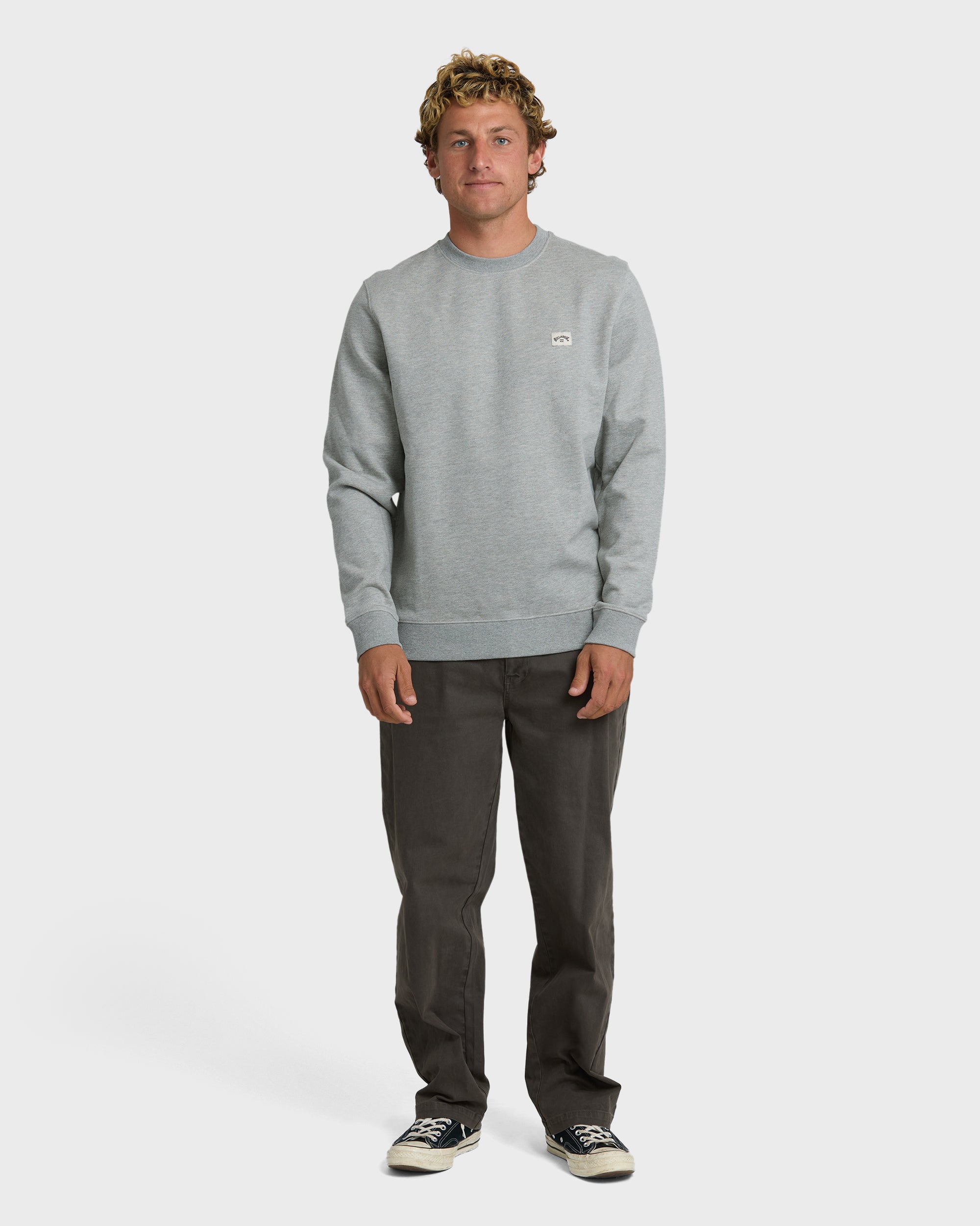 Our classic crewneck sweatshirt brings everyday comfort with a cotton-blend fleece fabric and regular fit. Clean design details include elastic ribbing at the collar and waistband, plus a woven chest label. Featured here in the Gray colorway.