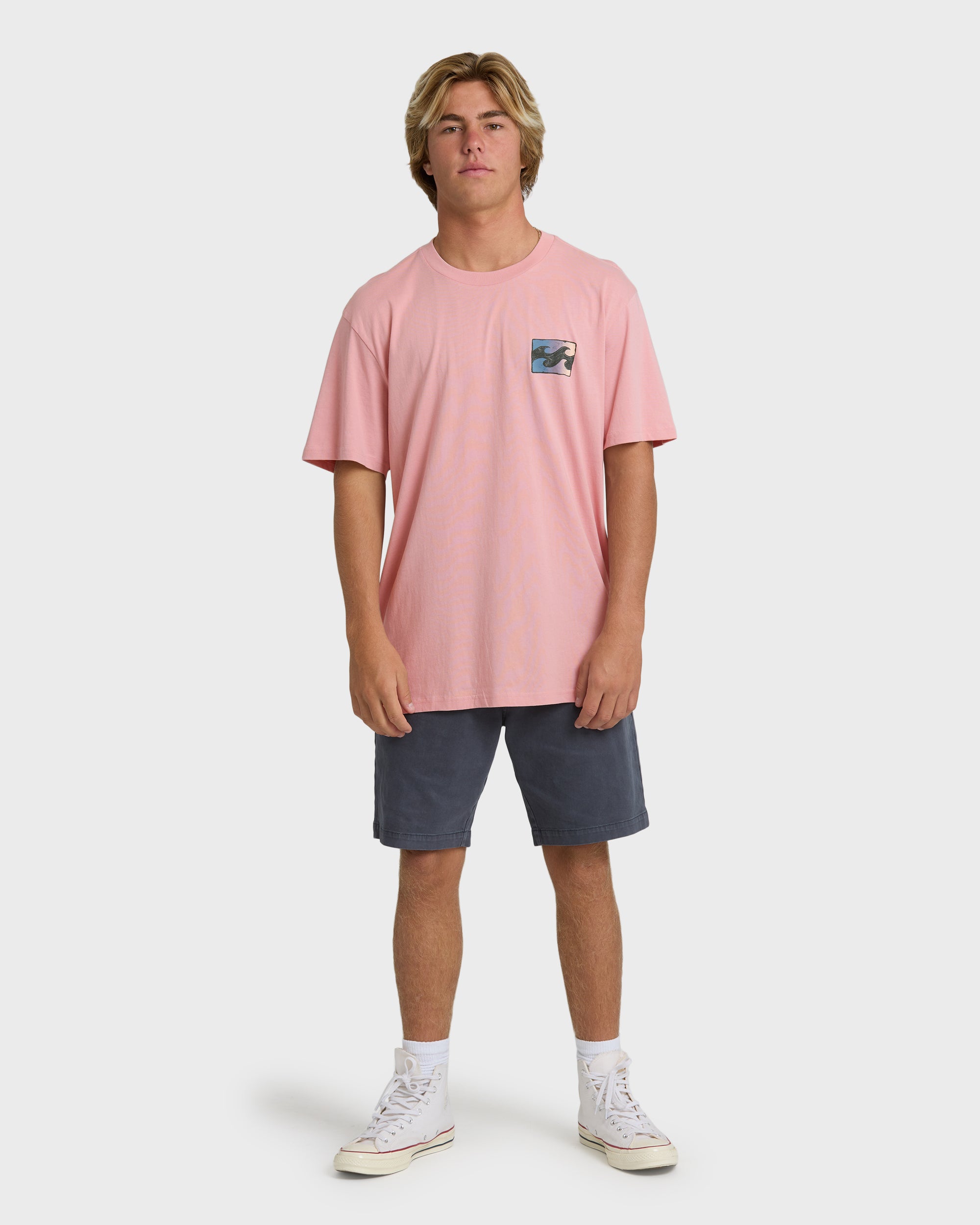 Our Crayon Wave Premium Short Sleeve T-Shirt in Vintage Pink brings comfort and style together with 100% cotton construction. The premium fit flatters your frame without clinging, while soft hand screen printing adds a touch of artistry. Subtle side seam branding completes the look.