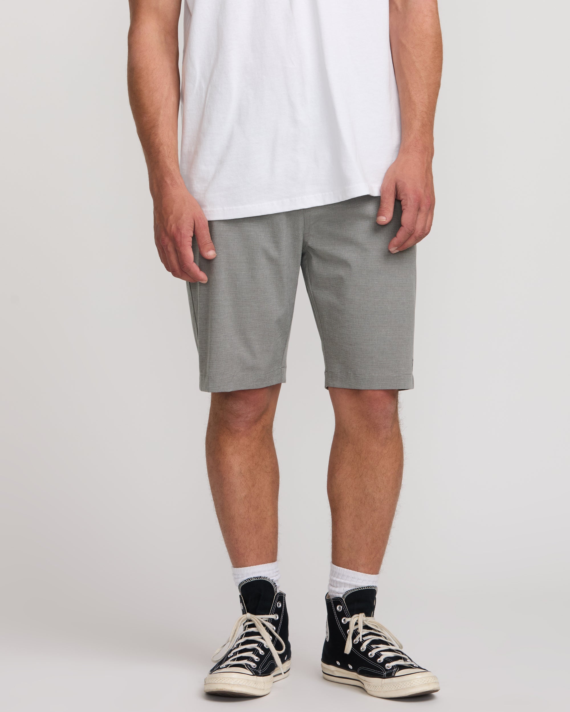 Versatile water-to-land shorts for adventure await. Crafted from quick-drying, stretchy quad blend fabric, these submersible Billabong hybrids feature a relaxed chino fit with functional pockets. Slub stripe oxford styling meets athletic performance for the ultimate seaside-to-street crossover. Featured here in the Gray colorway.