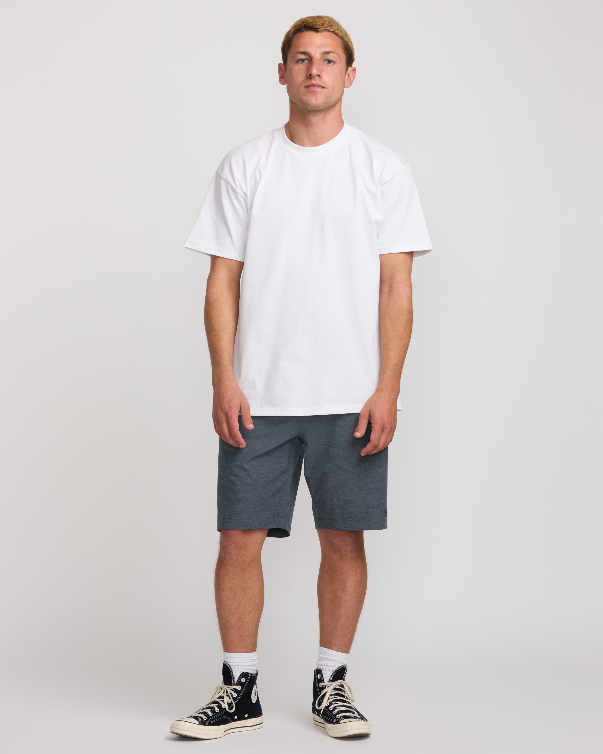 Versatile water-to-land shorts for adventure await. Crafted from quick-drying, stretchy quad blend fabric, these submersible Billabong hybrids feature a relaxed chino fit with functional pockets. Slub stripe oxford styling meets athletic performance for the ultimate seaside-to-street crossover. Featured here in the Navy colorway.