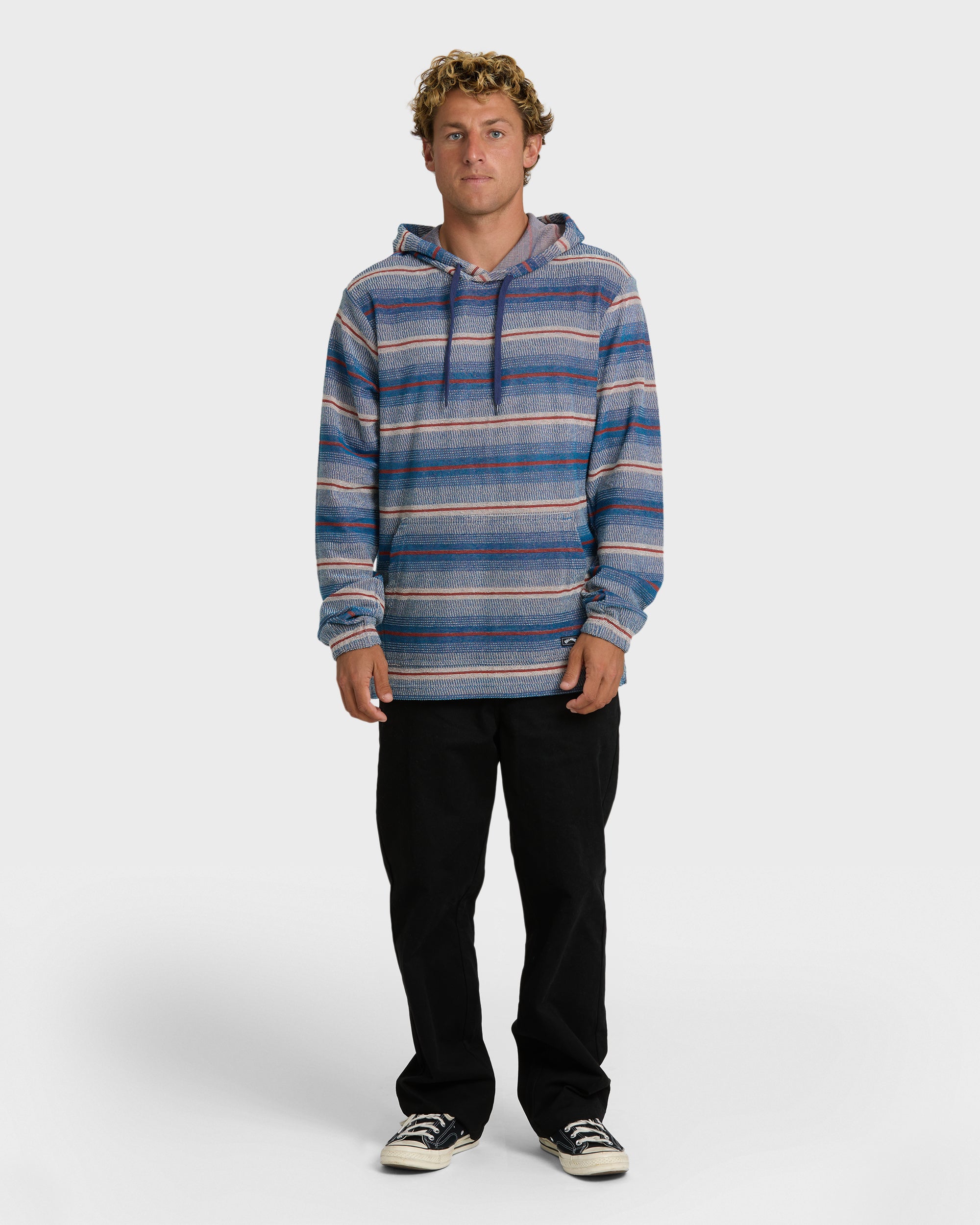 Cozy up in our Flecker Diego Hoodie in Dark Denim. This regular fit cotton hoodie features a convenient kangaroo pocket for your essentials and side seam vents for breathable comfort. Simple striped styling with minimal branding makes this the perfect everyday layer.