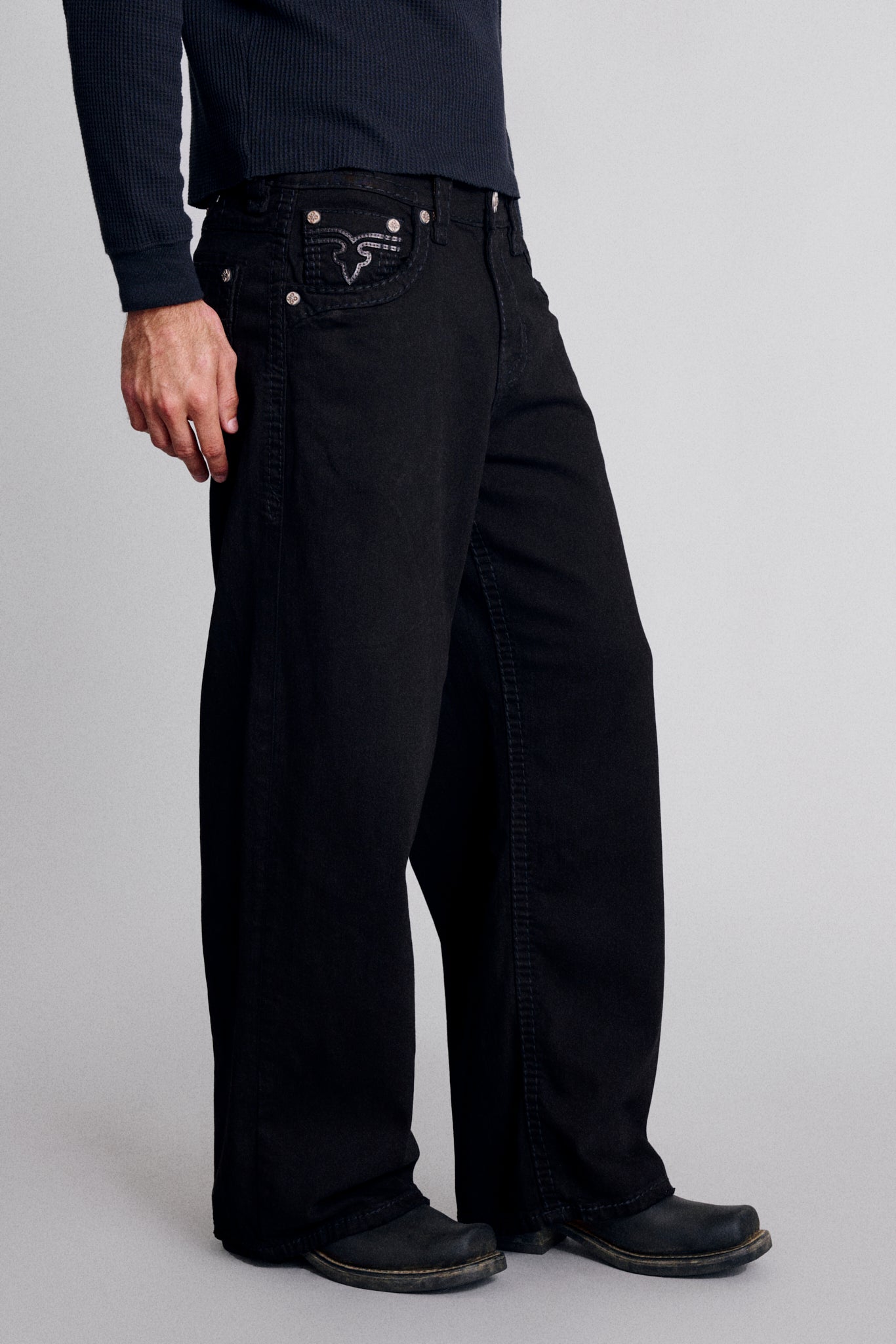 Newton Oversized Fit Jeans by Rock Revival feature our widest baggy silhouette — crafted in a black wash with a bold, oversized shape and designed in Los Angeles.