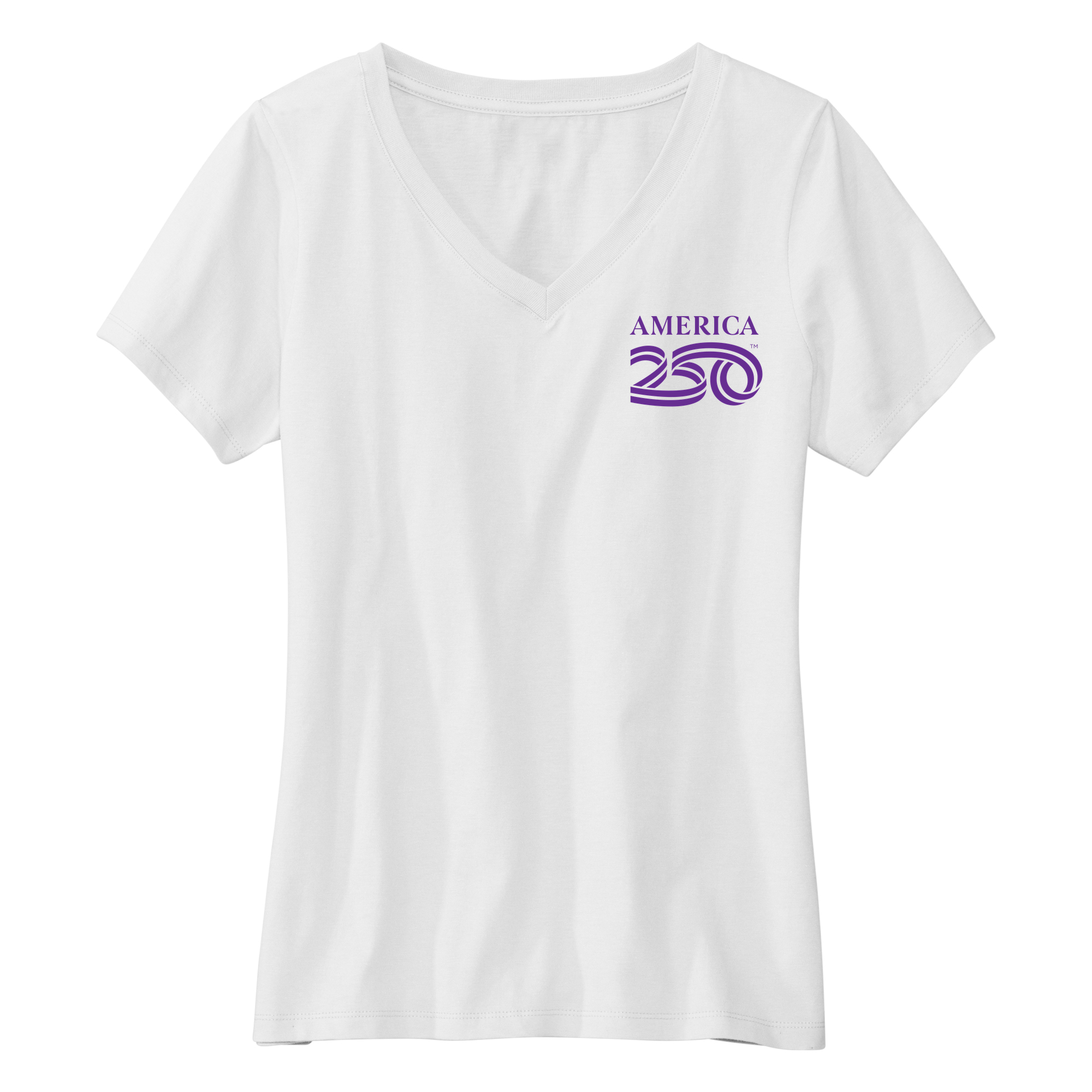 Designed with a flattering women�s fit, this shirt features shoulder to shoulder taping for added structure, set in sleevesfor a clean silhouette, and side seams that help the garment hold its shape. The classic V-neck makes it easy to wear on itsown or layered, whether dressing casually or showing your American pride.