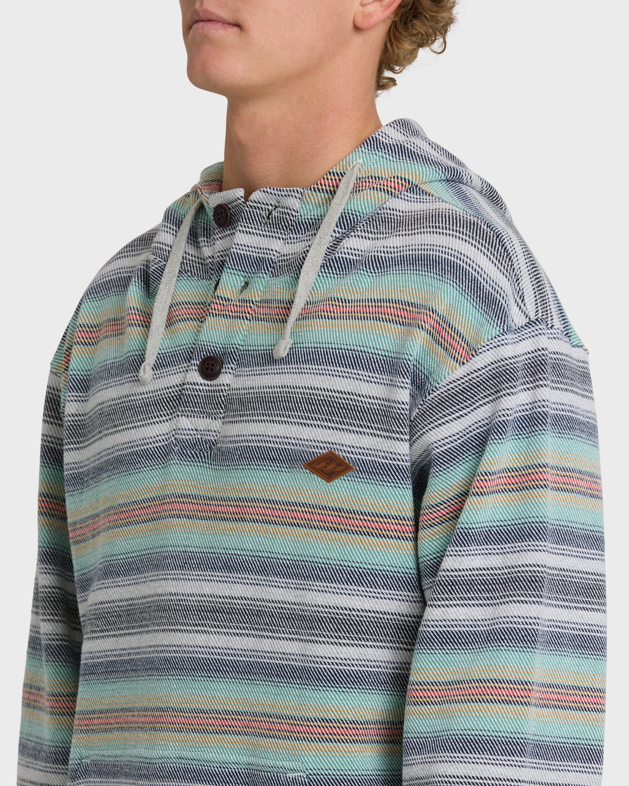 Cozy up in our yarn-dyed striped Rancho Hoodie in Heather Gray, combining comfort with classic style. The regular fit cotton design features a practical kangaroo pocket and collar placket for a touch of timeless surf style. Perfect for everything from early mornings to late nights.