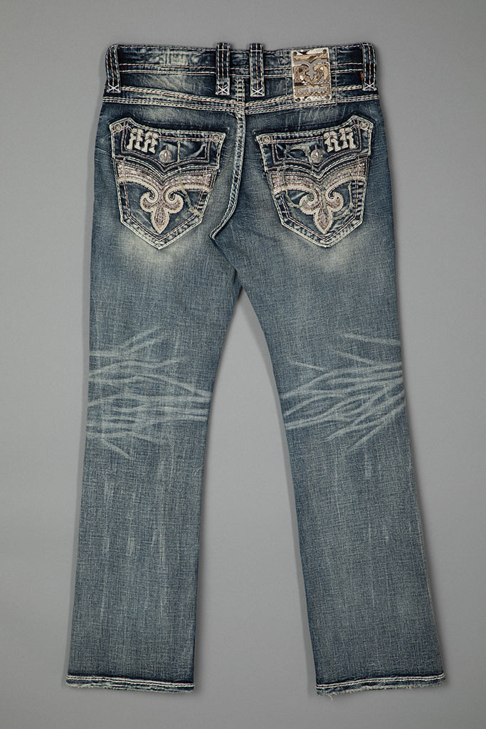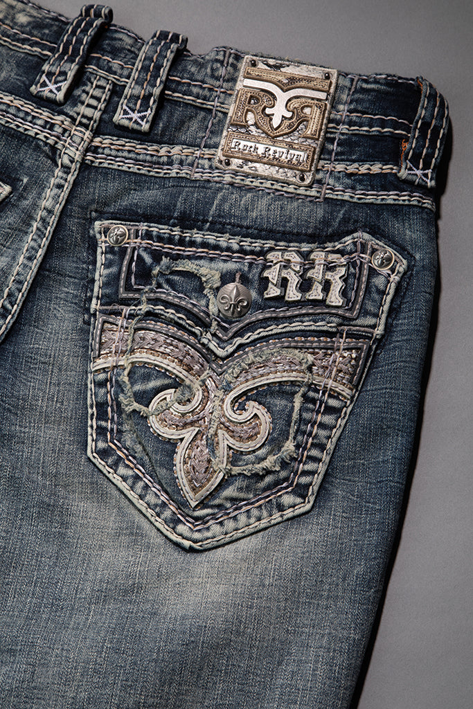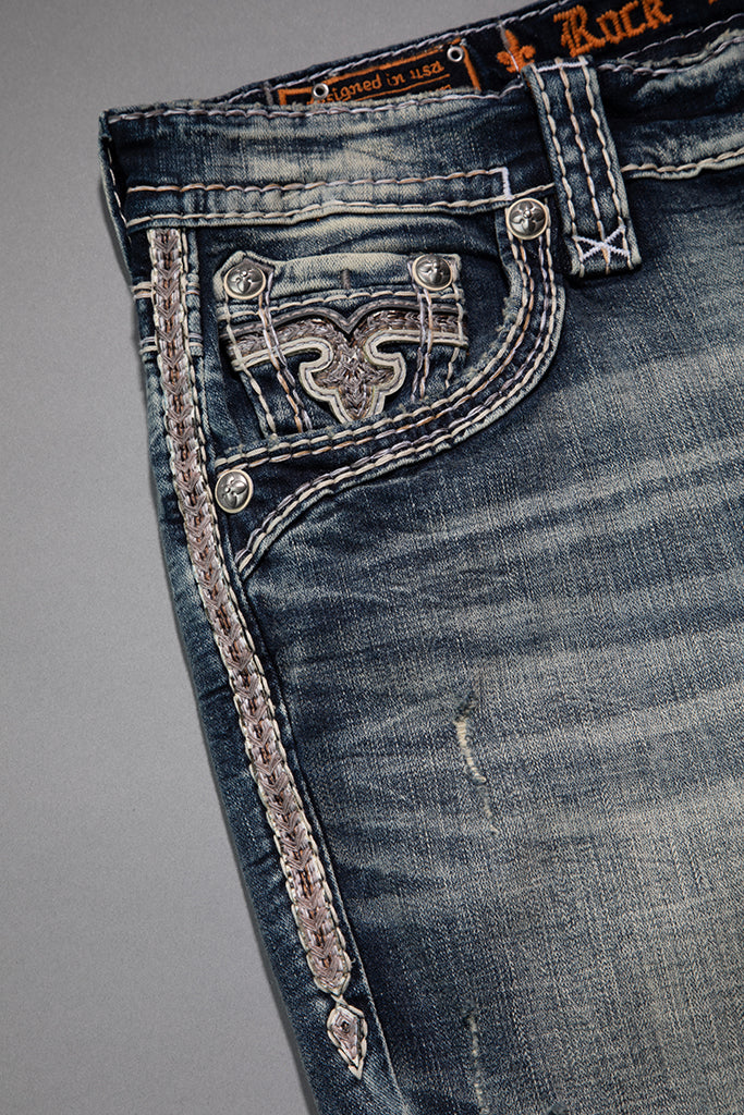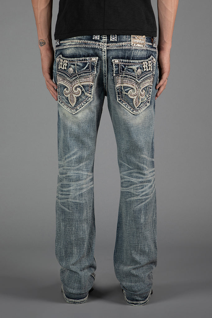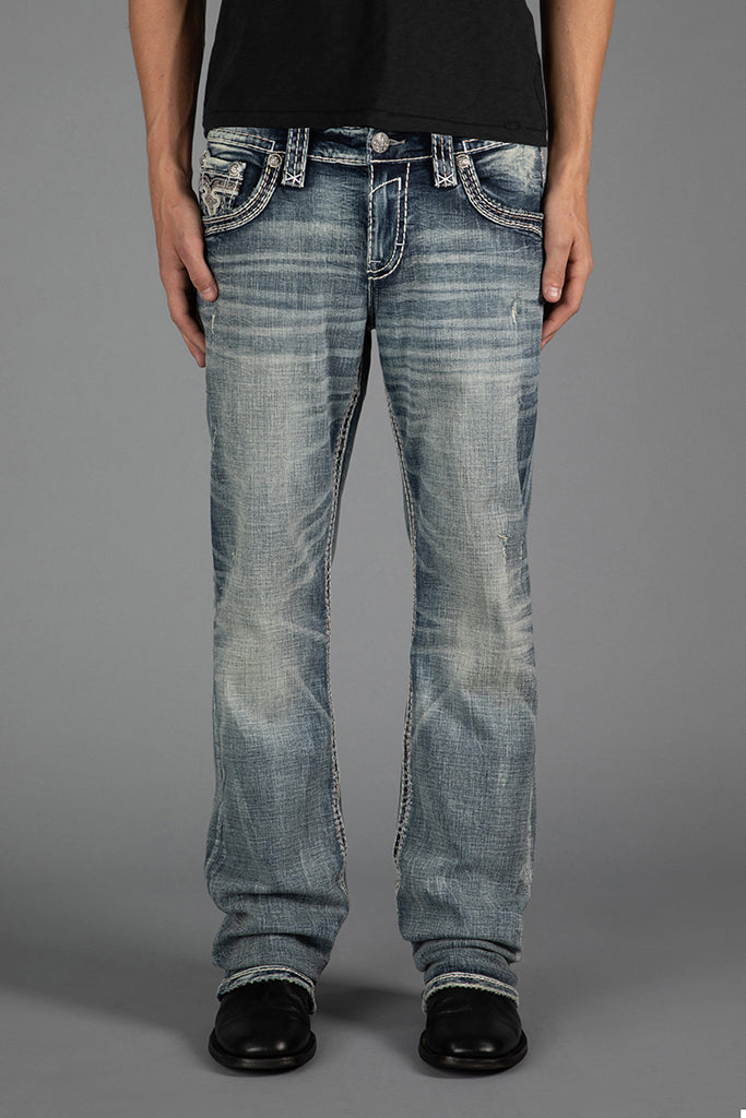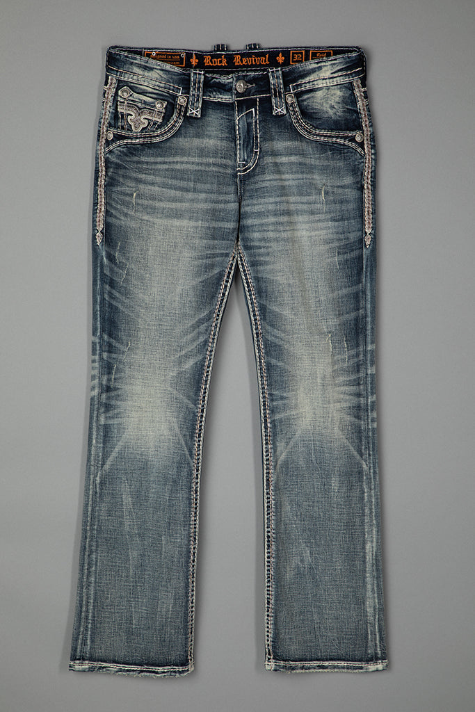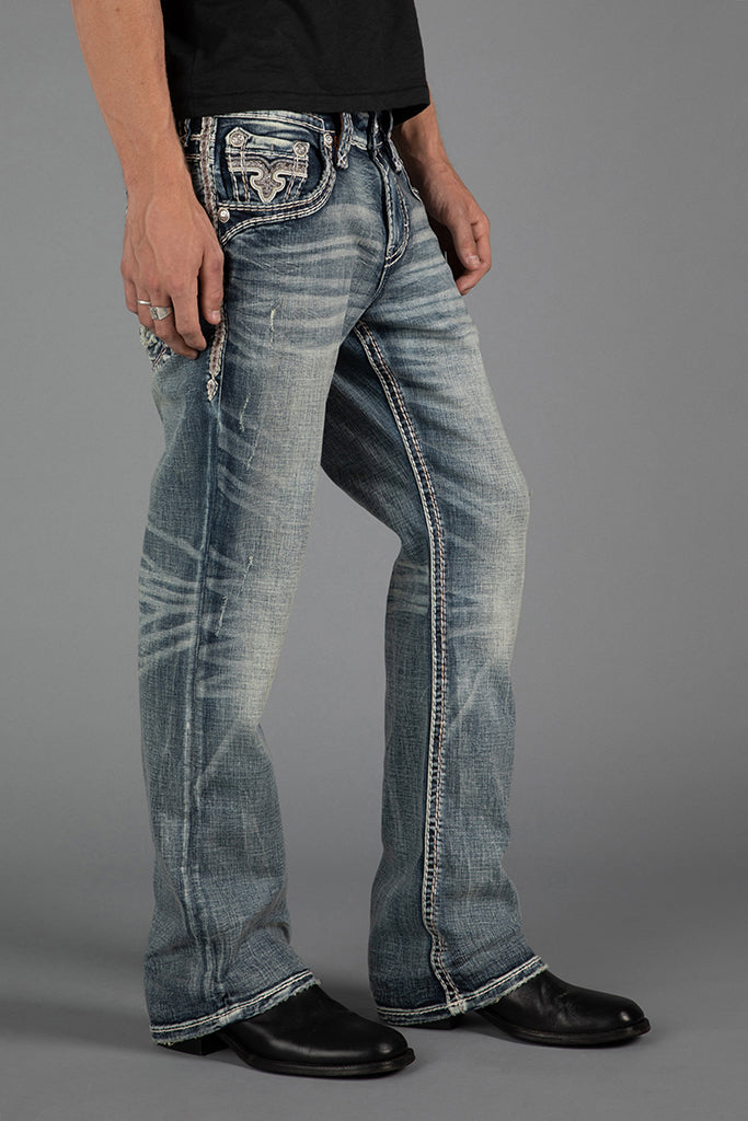 Reid Bootcut Jeans by Rock Revival with a bootcut silhouette crafted in a medium wash, designed in Los Angeles.