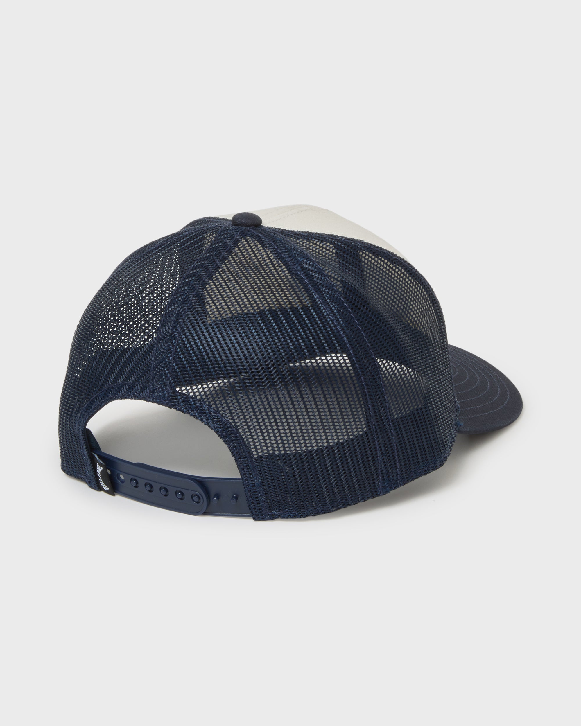 Upgrade your everyday look with our Walled Trucker Hat in Navy and White, featuring a classic 6-panel design with breathable mesh backing and adjustable snap closure. The high-profile fit and curved brim deliver timeless style, while the timeless color combo works with everything in your wardrobe.