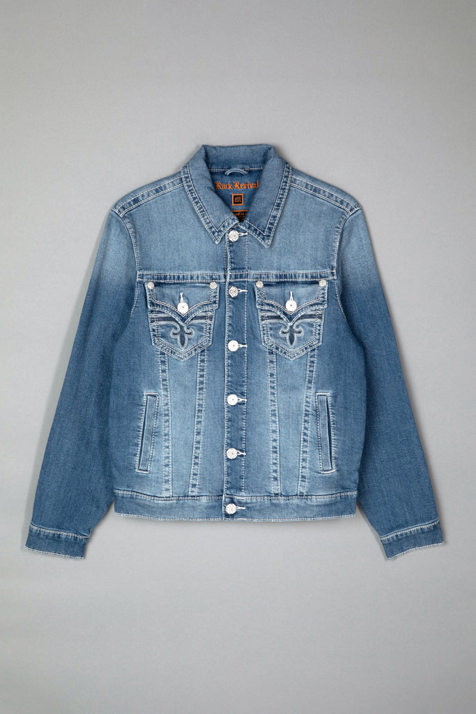 Jegor Denim Jacket by Rock Revival crafted in a medium wash, designed in Los Angeles.